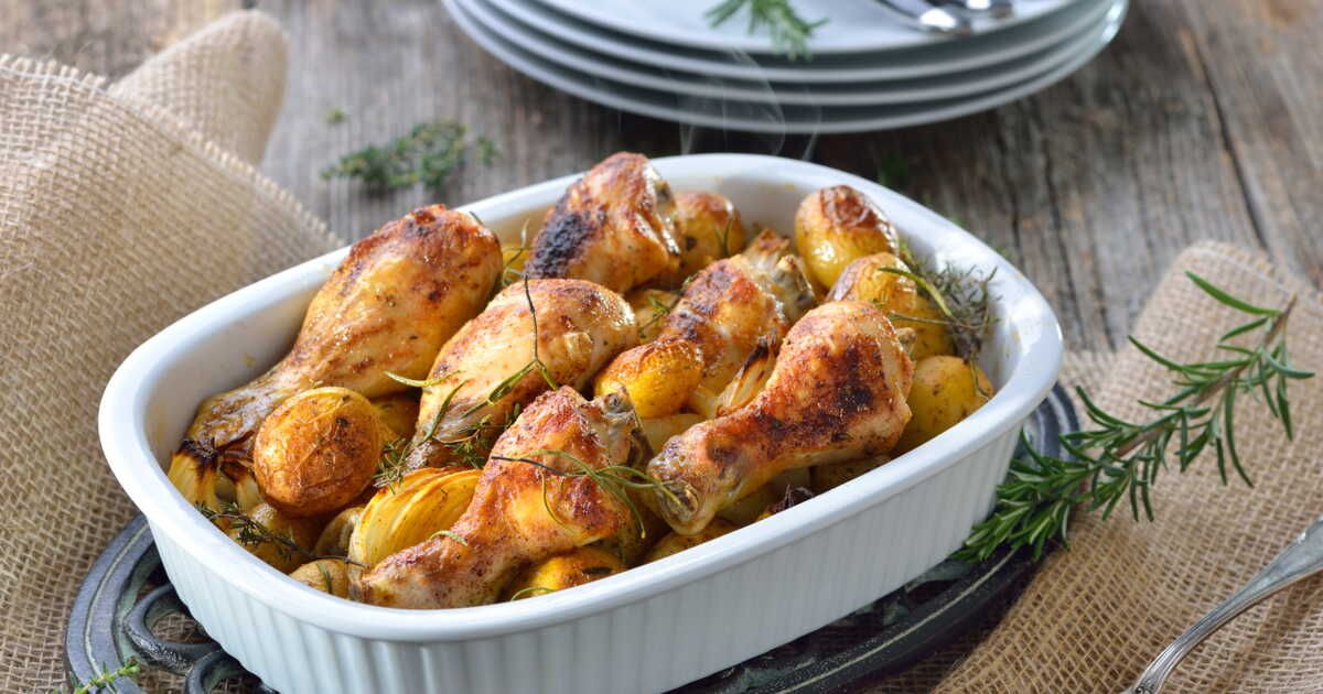 - Enfournez à 170 °C pendant 30 minutes, en veillant à retirer les blancs de poulet pour poursuivre la cuisson des cuisses pendant 15 minutes supplémentaires.