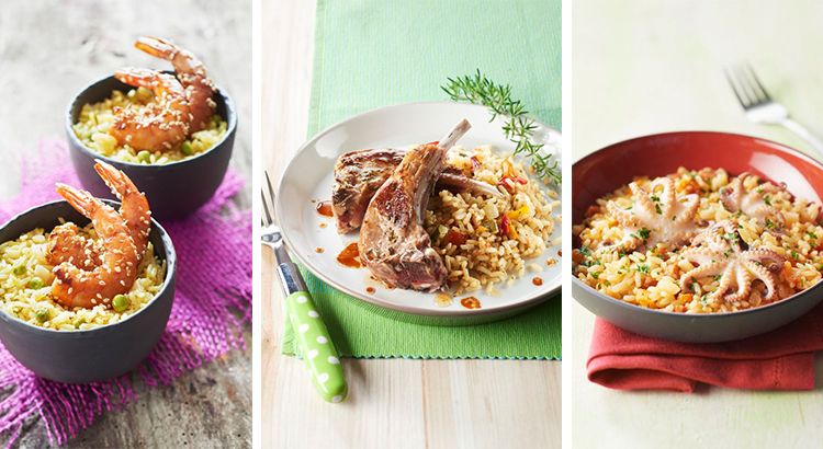 Riz à poêler : basmati au safran et petits pois - Gambas marinées sauce soja
