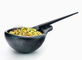 Préparation : Faites cuire le fonio, refroidissez-le et mélangez avec les légumes hachés. Réservez au frais et servez avec un filet d'huile d'olive.
