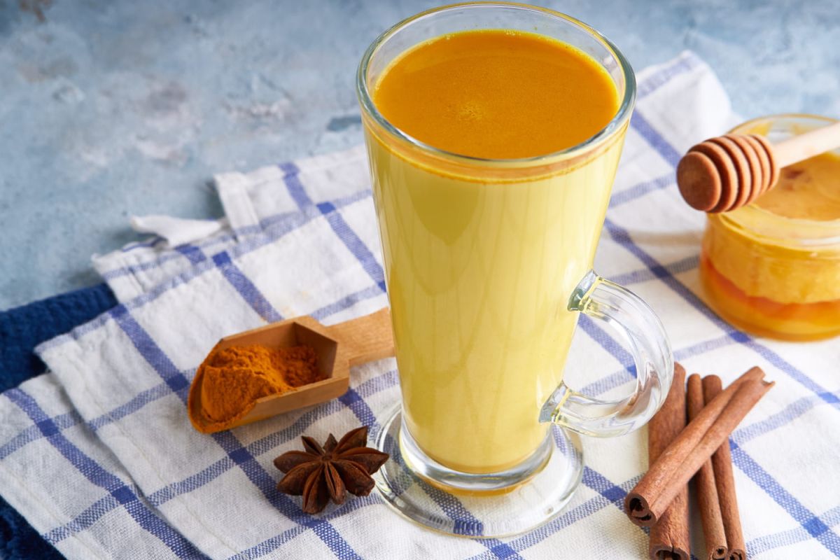 Également connu comme lait d'or ou golden latte, cette boisson se compose d'une infusion d'épices dans du lait ou une boisson végétale. Le star de la recette ? Le curcuma, reconnu pour ses multiples vertus. Associé au poivre pour une absorption optimale, et au gingembre et à la cannelle, ce mélange est parfait pour éloigner les rhumes.