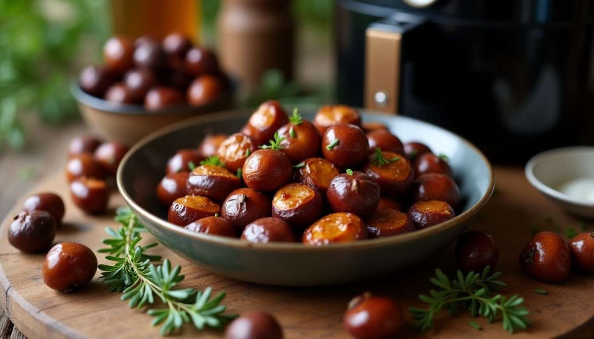 Pour amplifier davantage la saveur, vous pouvez ajouter un léger spray d'eau salée sur les châtaignes avant de les placer dans l'Airfryer.