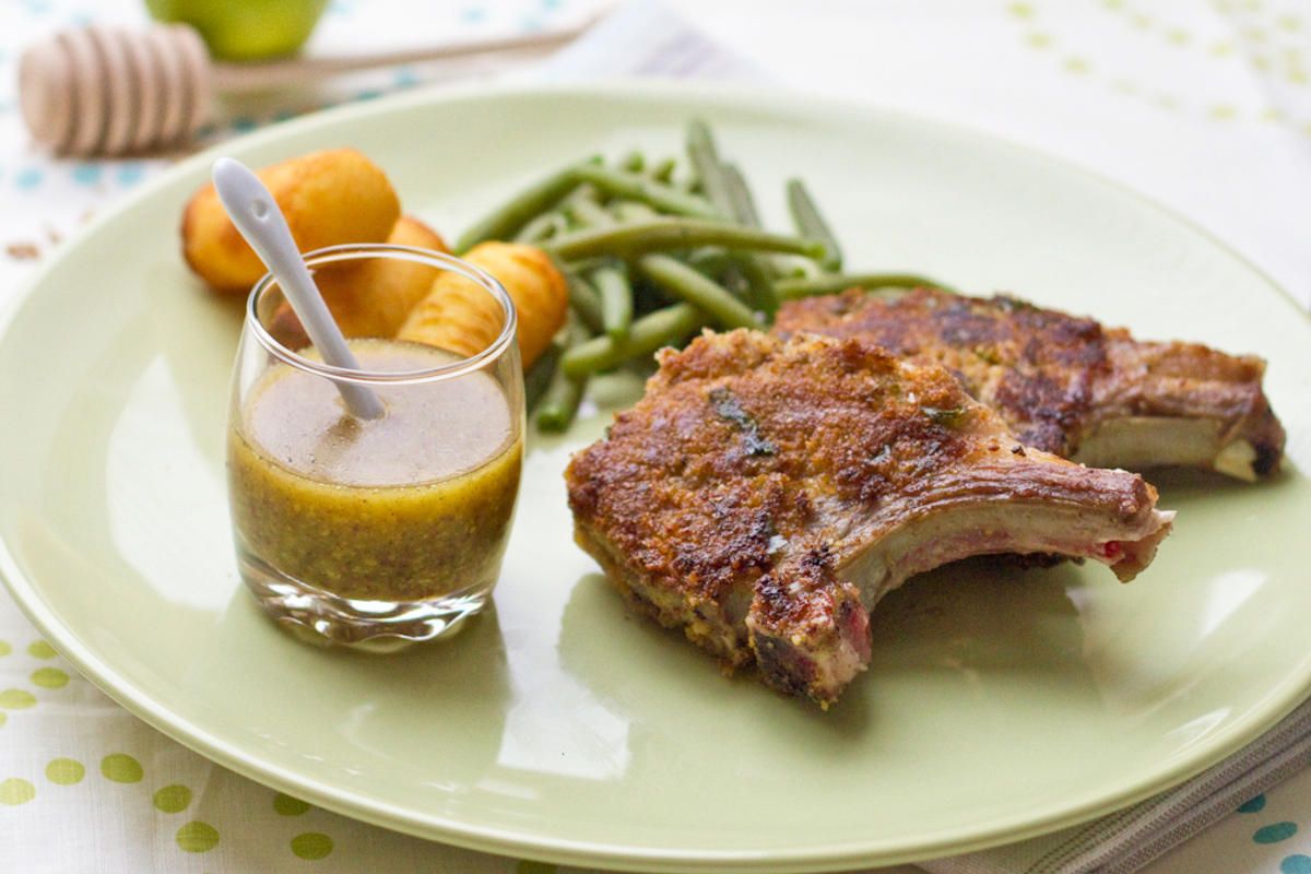 - Pour la sauce, mélangez tous les ingrédients dans un bol et réservez. Dans une poêle, chauffez l'huile d'olive, puis faites saisir les côtes d'agneau pendant 2 à 3 minutes de chaque côté. Retirez et servez avec la sauce au miel.