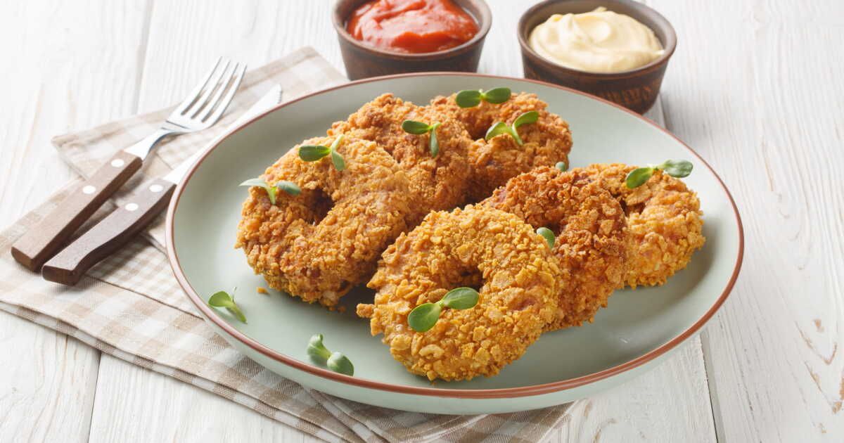 - Préparez trois récipients : un pour la farine, un pour les œufs battus, et un pour les cornflakes écrasés. Passez chaque donut dans l'œuf, ensuite la farine, à nouveau l'œuf, puis les cornflakes.