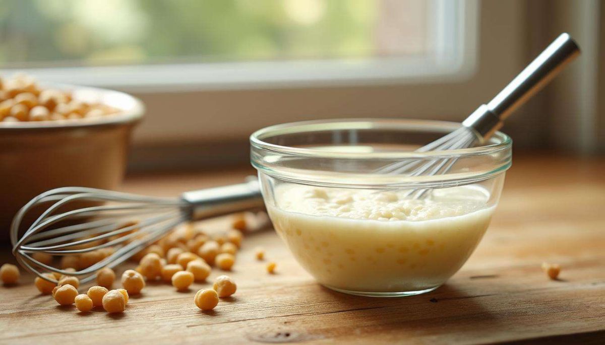- Émulsifiant : L'aquafaba permet de mélanger des ingrédients qui ne se combinent généralement pas, comme l'huile et l'eau.